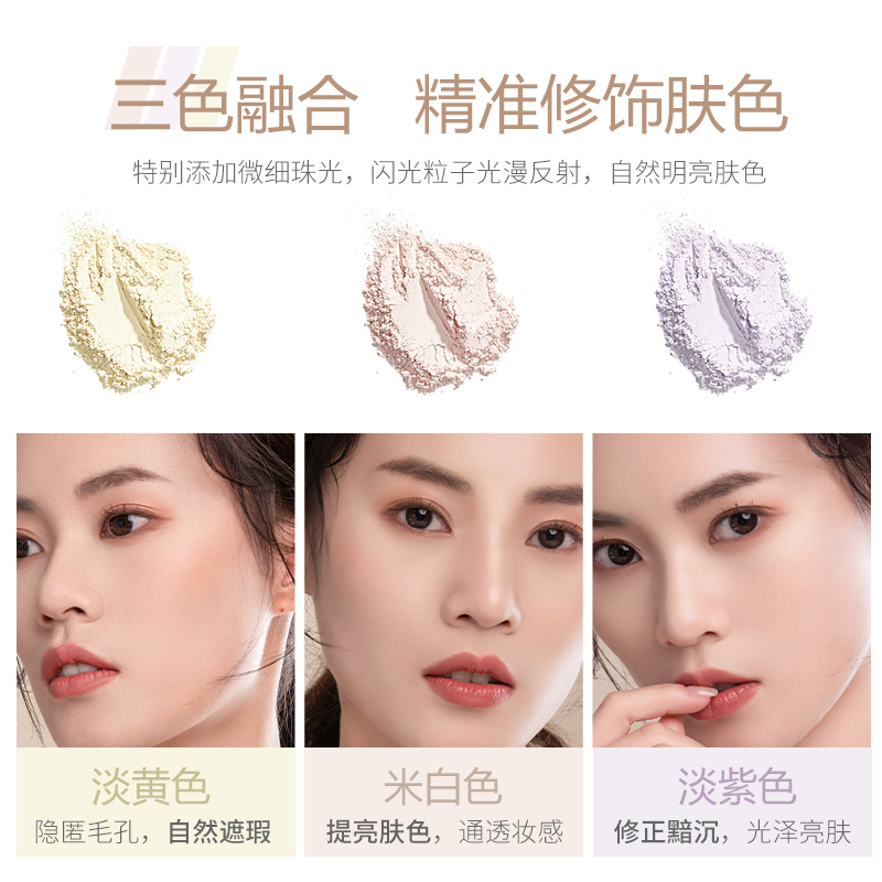 Barbera three-color loose powder set makeup powder honey powder cake long-lasting oil control is not easy to take off makeup concealer waterproof anti-sweat