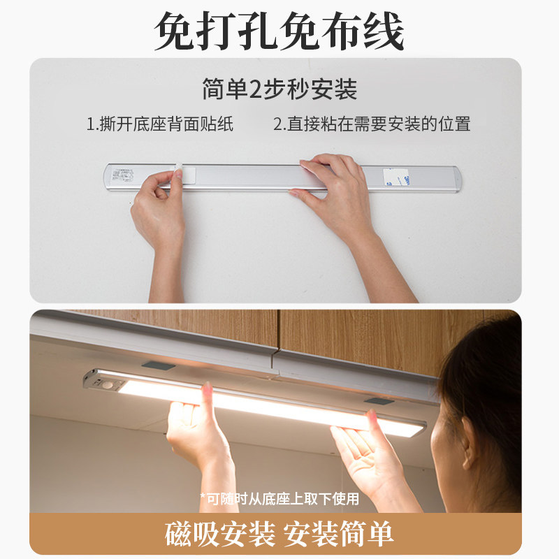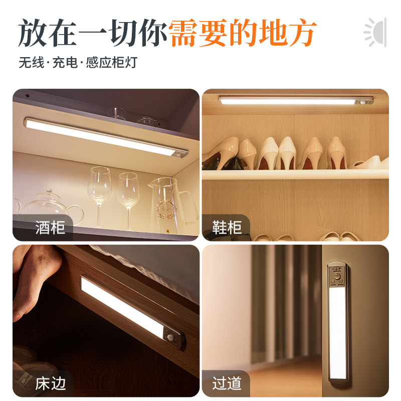 LED cabinet light with rechargeable intelligent human body automatic induction wardrobe kitchen cutting vegetables to do cooking magnetic suction free installation