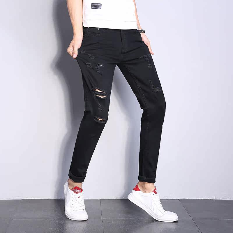 Black jeans Men's boomer summer thin section Body Smoke tubes pants Korean version Trend Elastic Straight Cylinder Long Pants Man