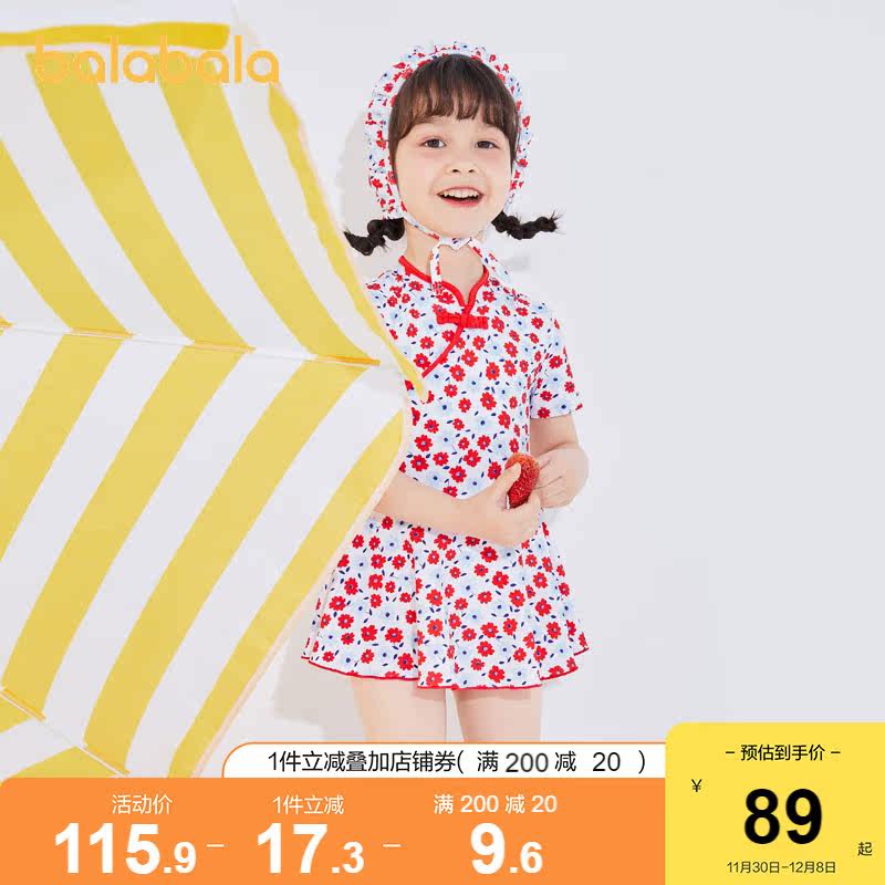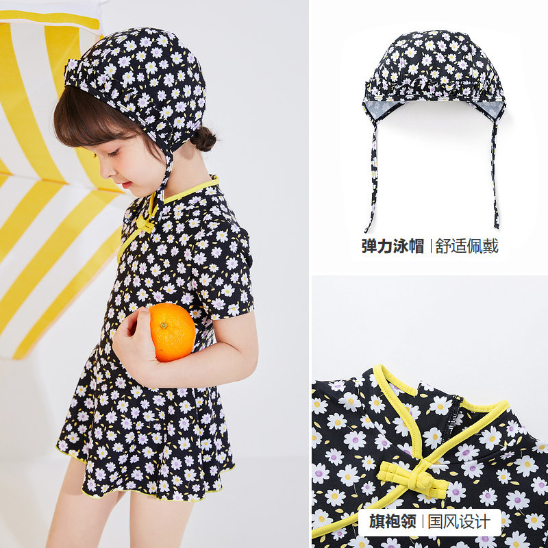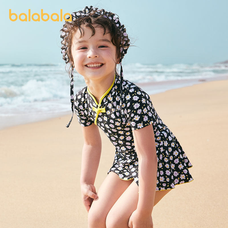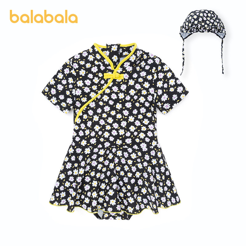 Balabala children's swimsuit set girl's one-piece swimsuit National style cheongsam swimsuit swimming cap two-piece baby