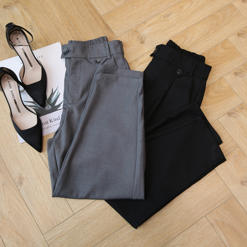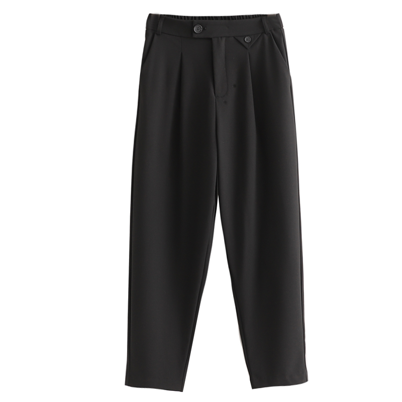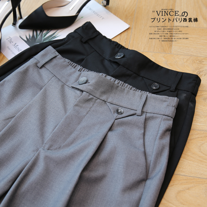 LNKK has elastic thin section high waist belt elastic waist black gray suit pants women's loose large size pants tapered radish pants