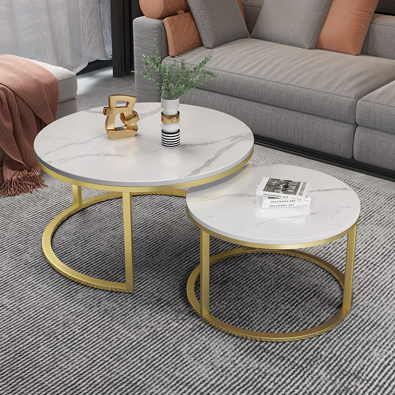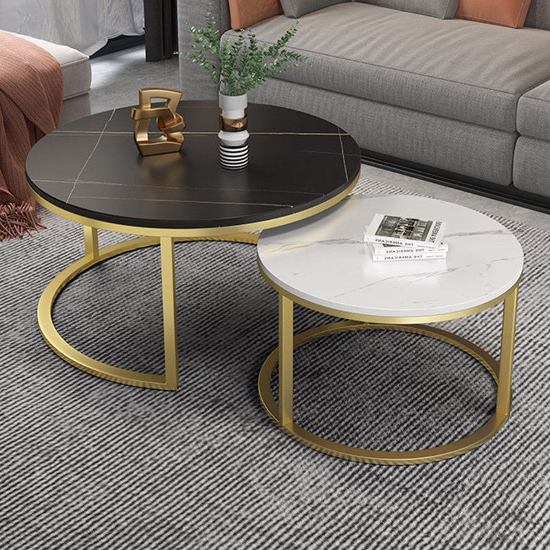 Italian minimalist rock slab size round coffee table combination living room telescopic tea table Nordic modern minimalist design small apartment
