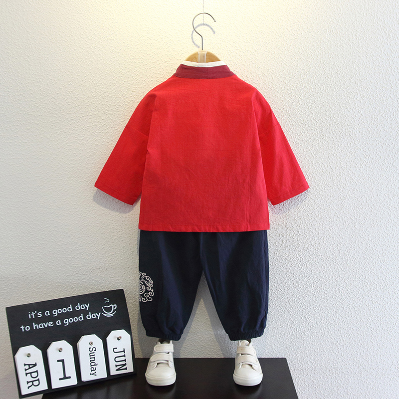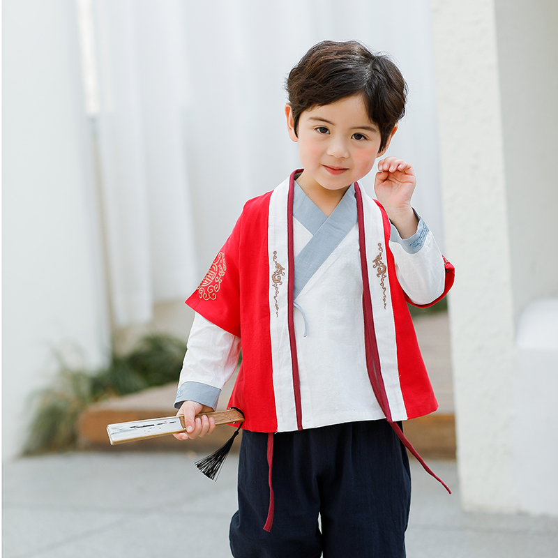 Hanfu boys spring and autumn Chinese style ancient costume three-piece children's Tang suit retro boy one year old dress