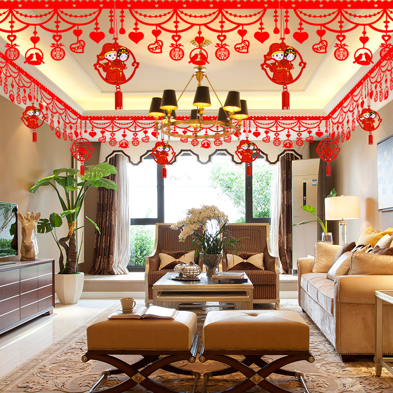 New wedding room decorated wedding arrangement supplies red non-woven fabric curtain new room welcome flower