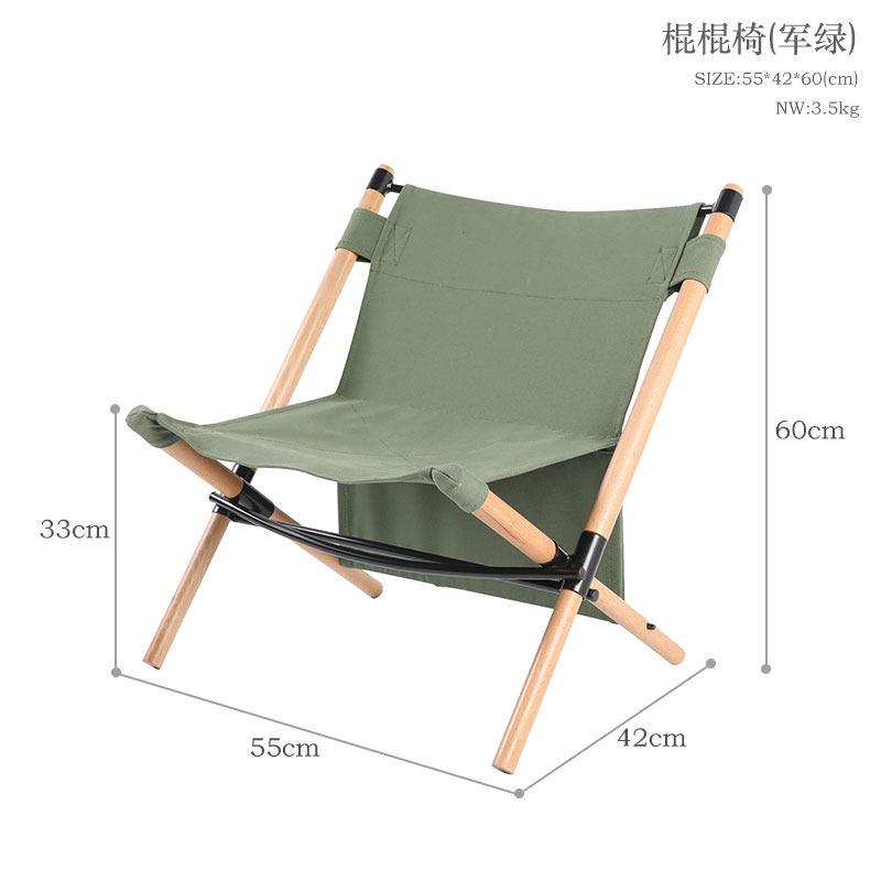 Hanfor Outdoor Camping Army Green Karma Solid Wood Kermit Chair Canvas Folding Chair Portable Small Stool