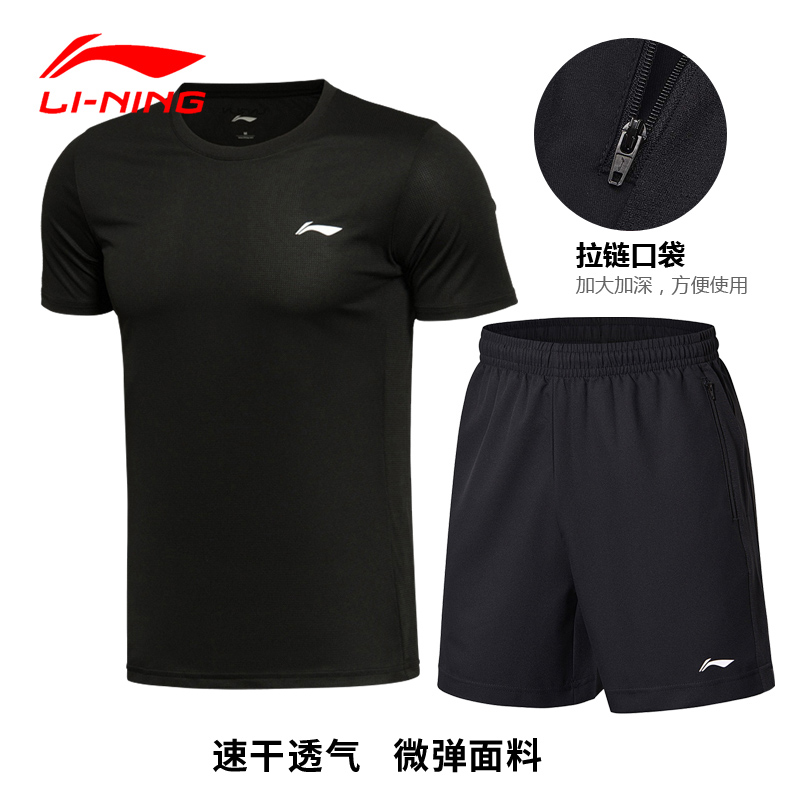 Li Ning sports suit men's summer new short-sleeved shorts ice silk quick-drying air fitness running loose two-piece set