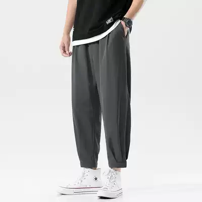 Men's pants 2021 New Summer Ice Silk Korean version of the trend sports nine-split feet casual trousers