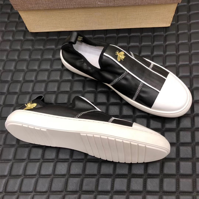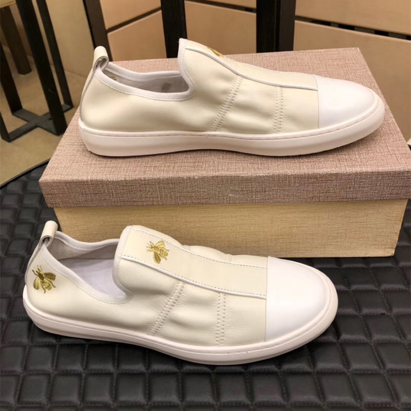 European station new men's shoes spring and autumn leather light luxury small bee all-match small white shoes loafers slip-on sneakers