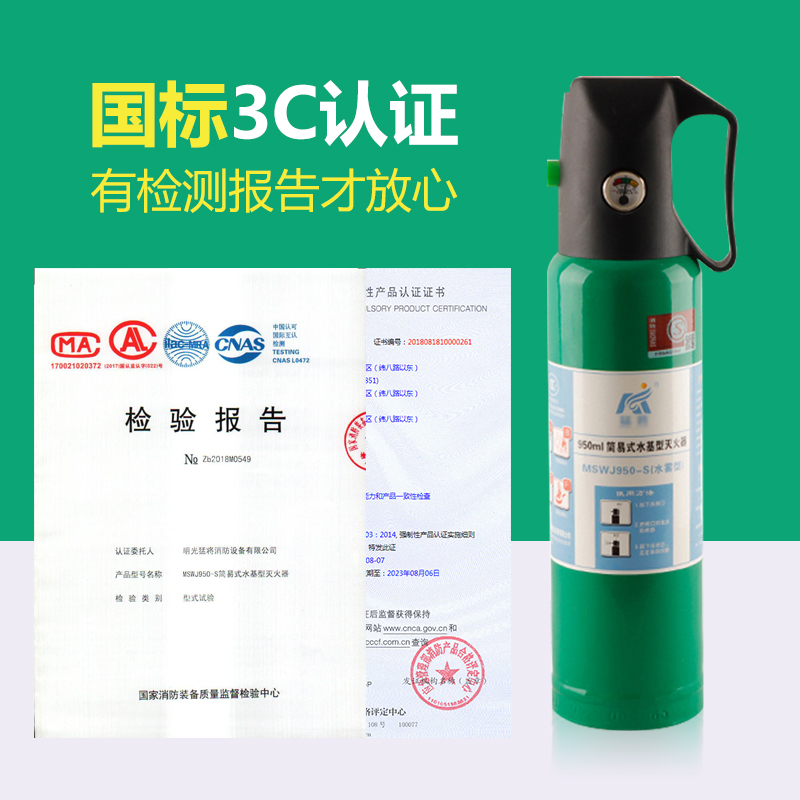Car water-based fire extinguisher Household kitchen commercial factory Green small water-based fire extinguisher 3C certification