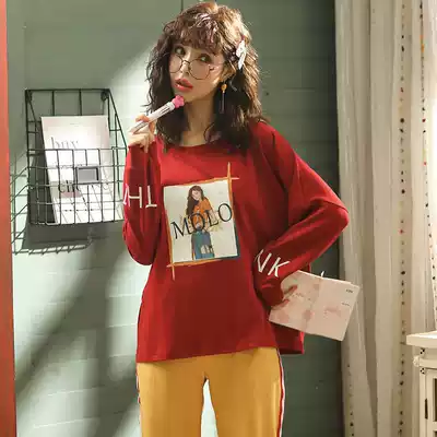 Cotton pajamas women's autumn and winter suits long sleeve Korean version of cute home clothes student suits home clothes