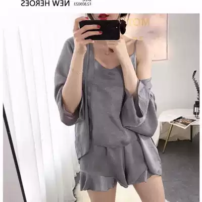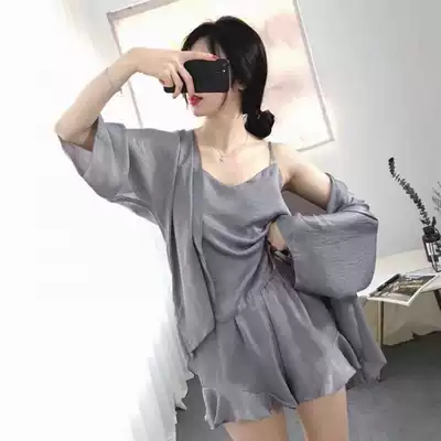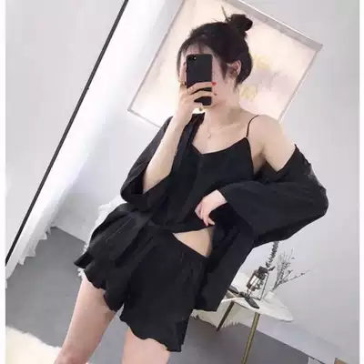 Extra large pajamas women Summer three-piece set sexy suspenders shorts plus fat plus size 200 Jin student home clothes