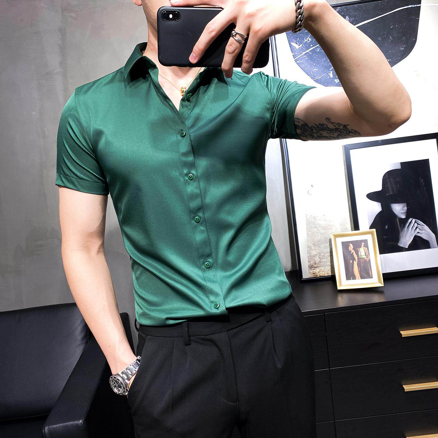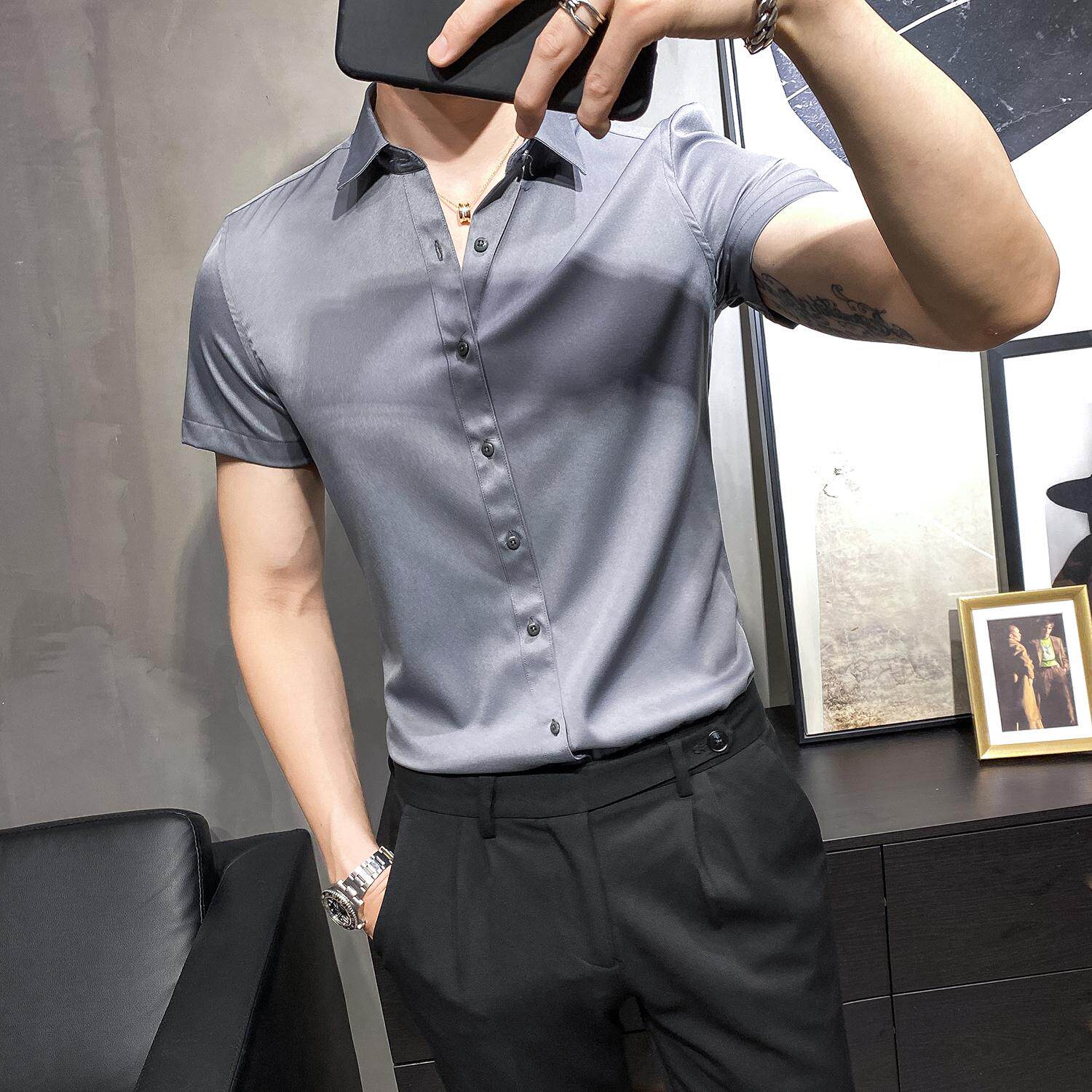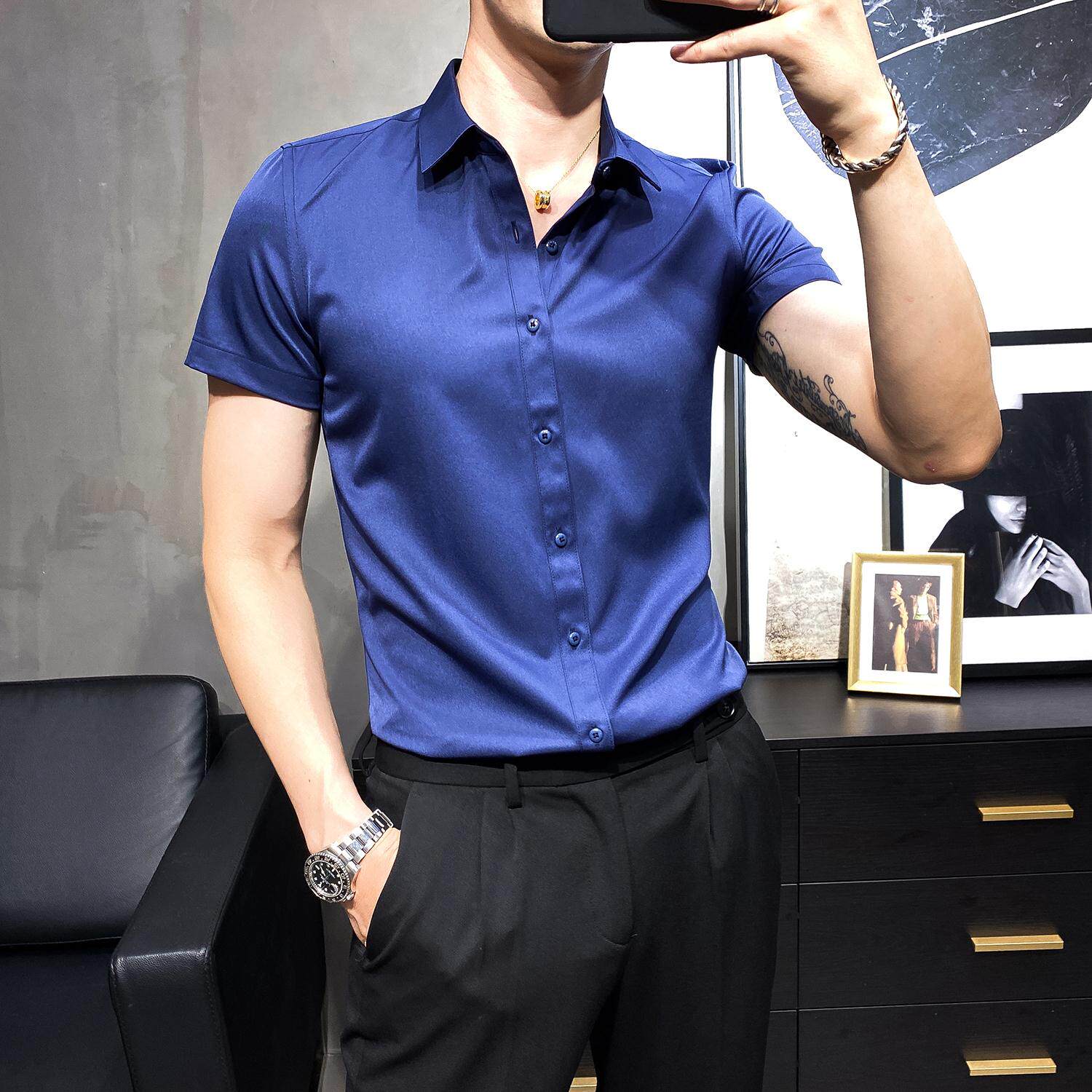 British men's summer casual shirt men's short-sleeved Korean version of the slim non-ironing cropped shirt half-sleeved business top