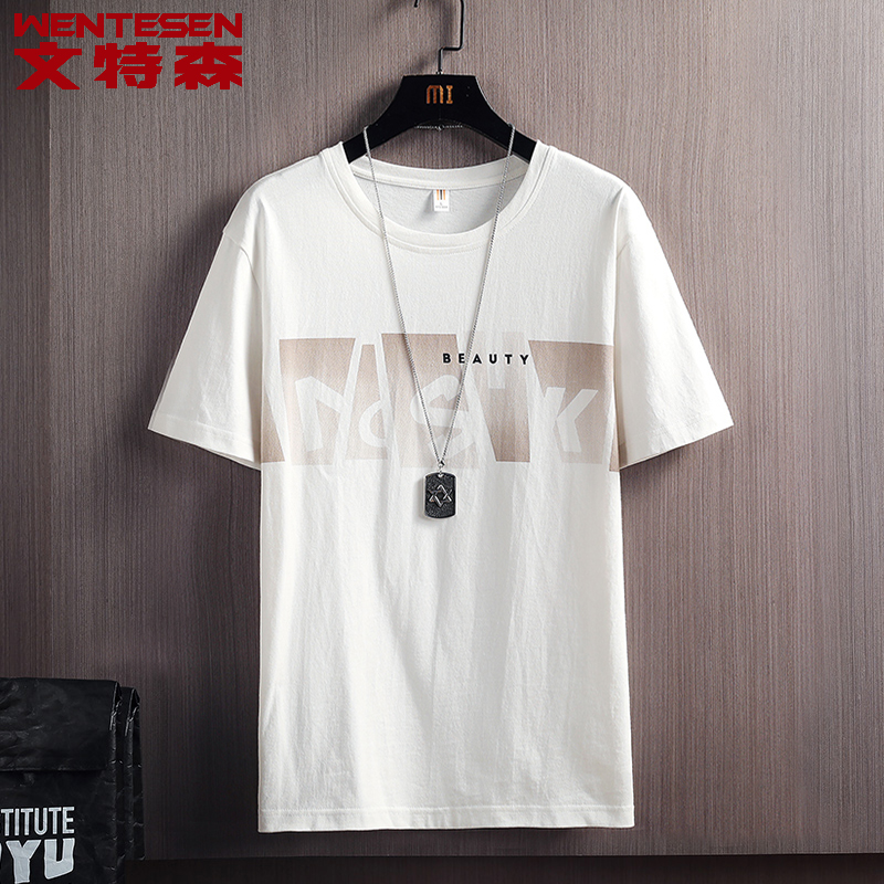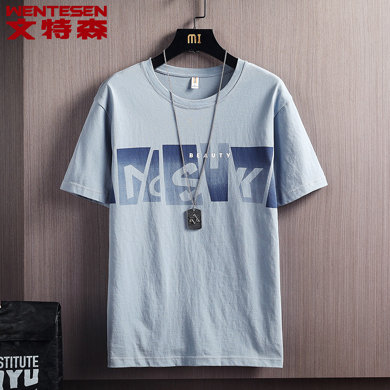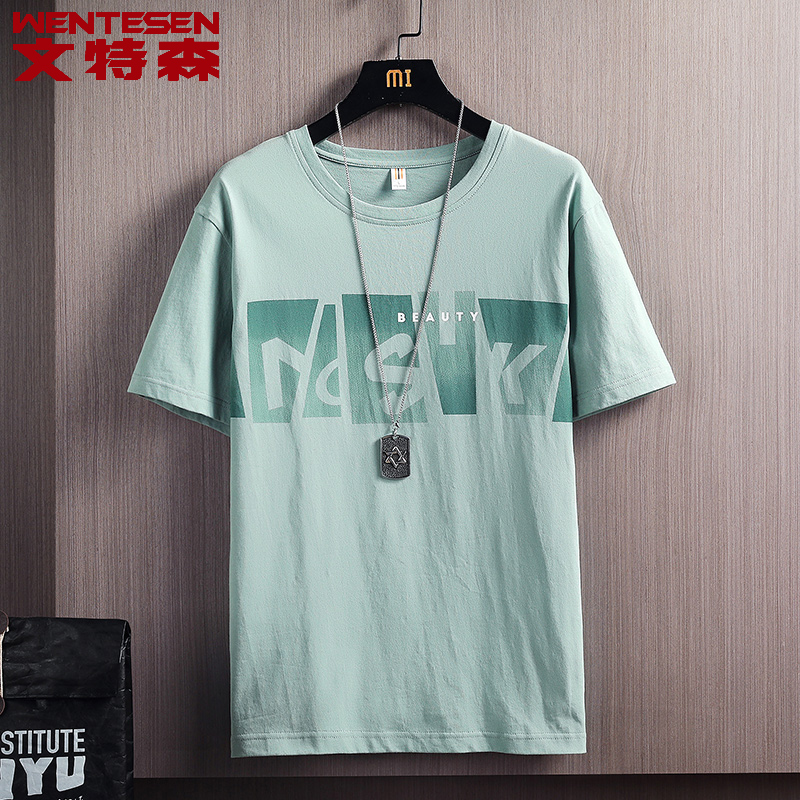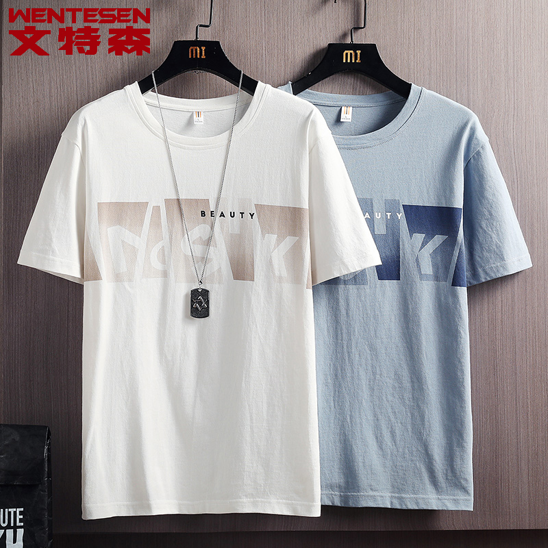 2022 Summer new Korean version Trend casual T-shirt male youth round collar printed tide card short sleeve T-shirt male dress blouse