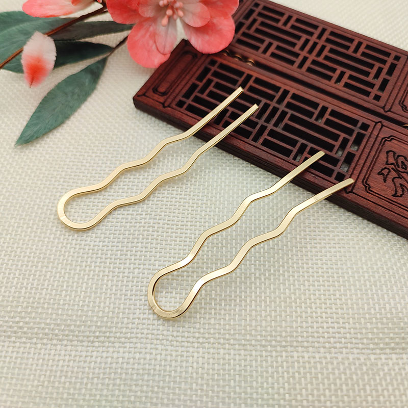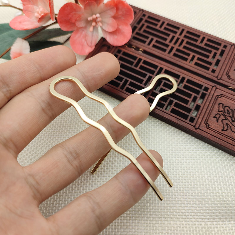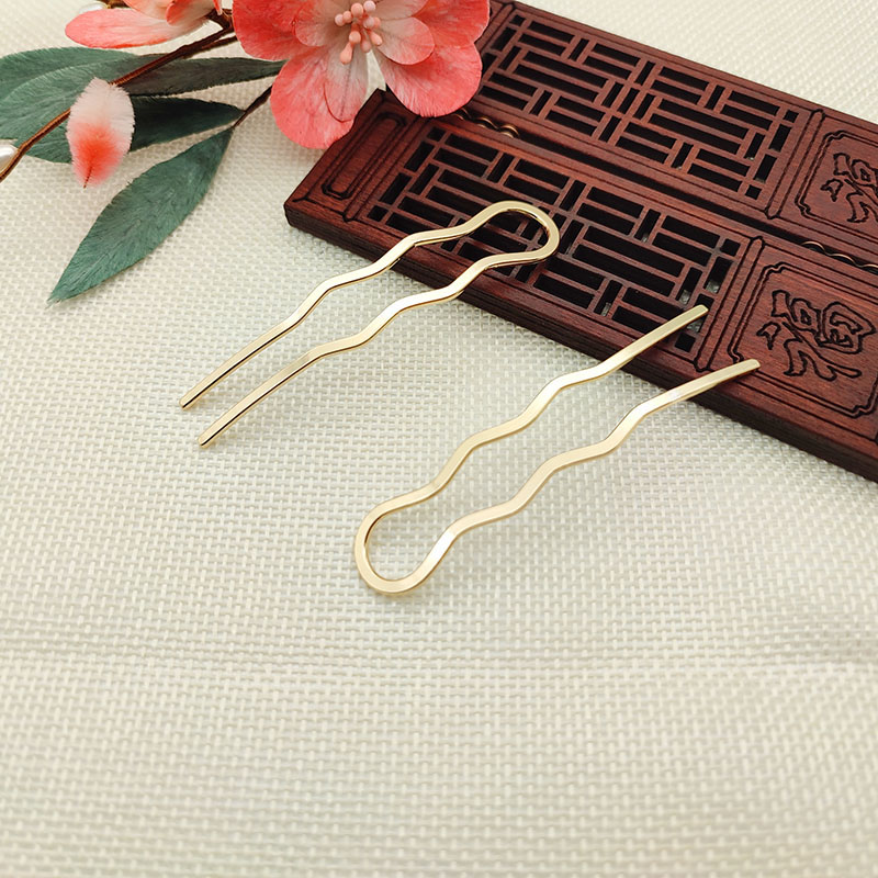 Two-tooth arch wave hair comb hairpin 70mm pure copper electrophoresis color preservation ancient style handmade diy hairpin accessories materials