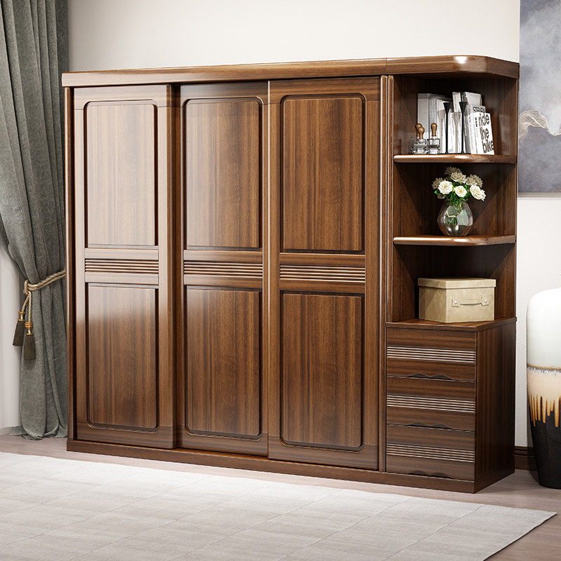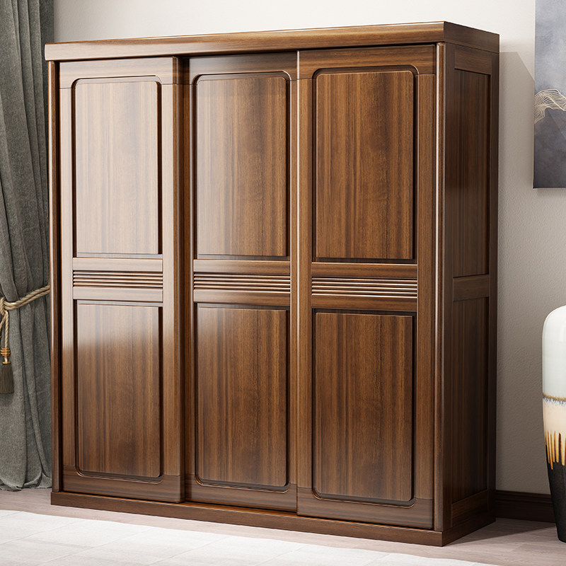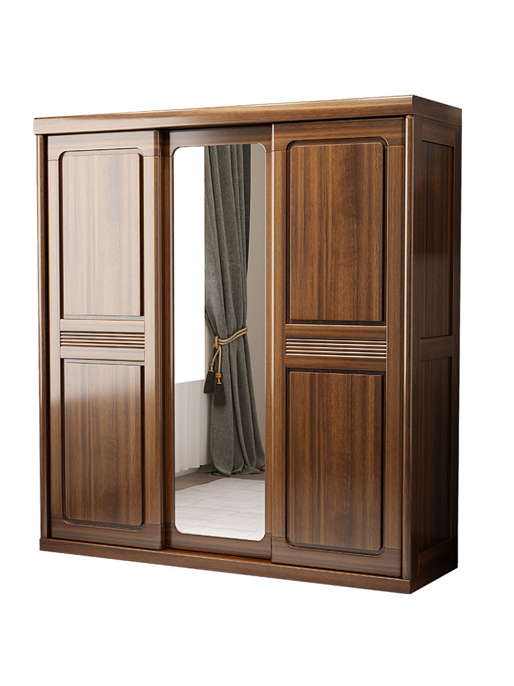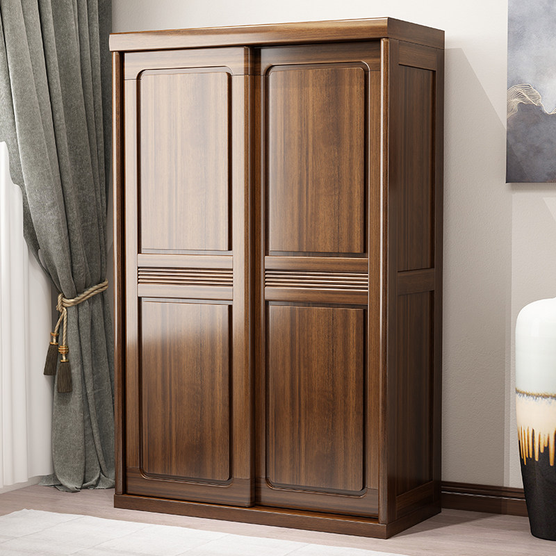 Walnut wardrobe Household bedroom sliding door Solid wood wardrobe Simple modern small household cabinet Storage large wardrobe