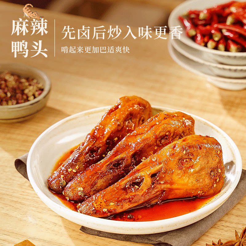 Sichuan peach sister cold eating duck head Zigong special vacuum stewed cooked food casual spicy duck head meat snacks