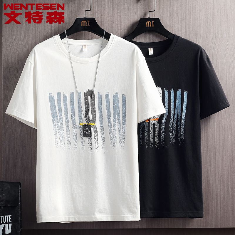 Short-sleeved t-shirt men's 2023 new summer Korean version trendy loose half-sleeve trendy brand t-shirt men's round neck pullover top