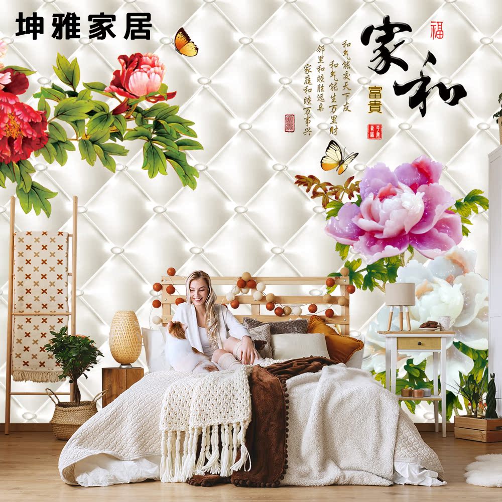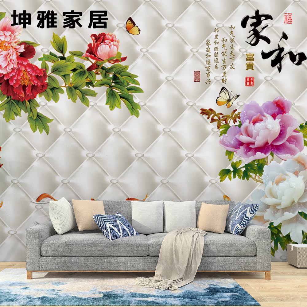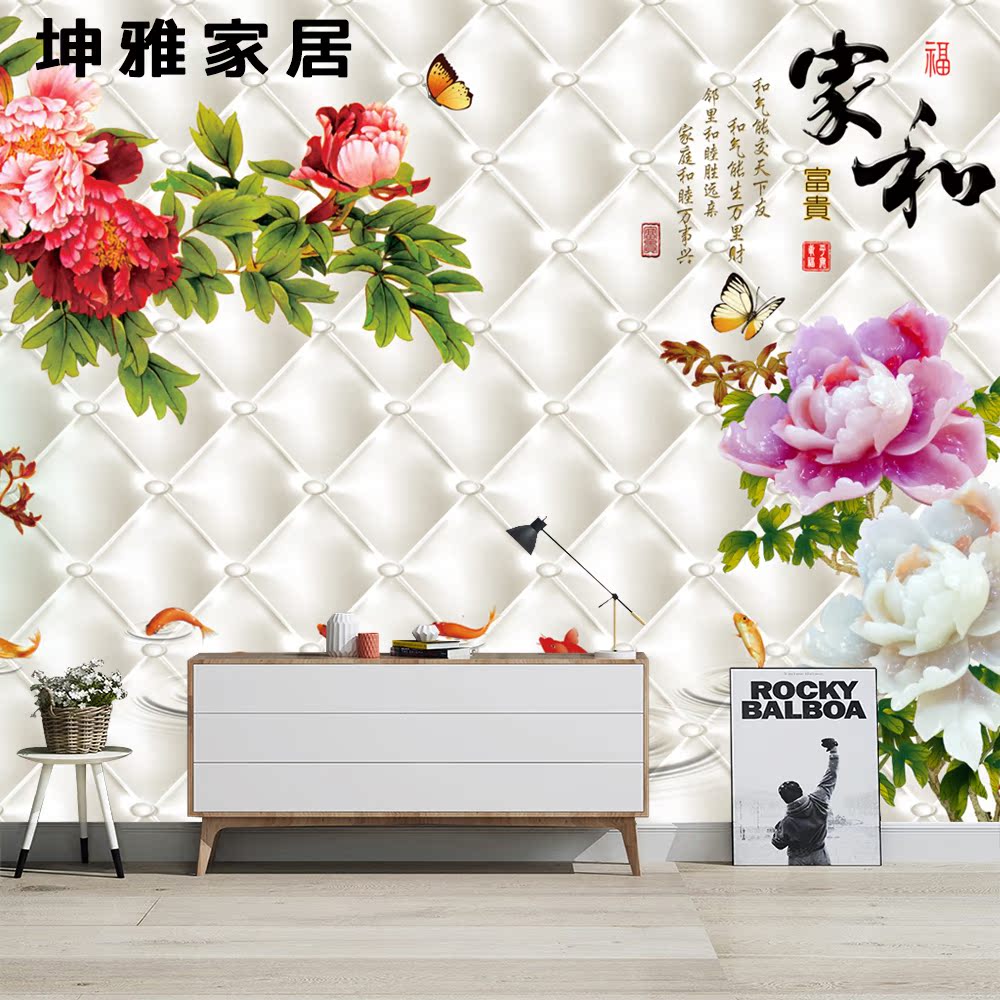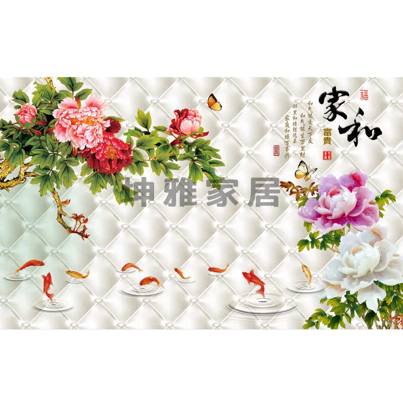 Wood-wood fiber integrated wall panel Chinese style retro peony Nine fish TV Background wall panel Living room Decorative Wall wall panel