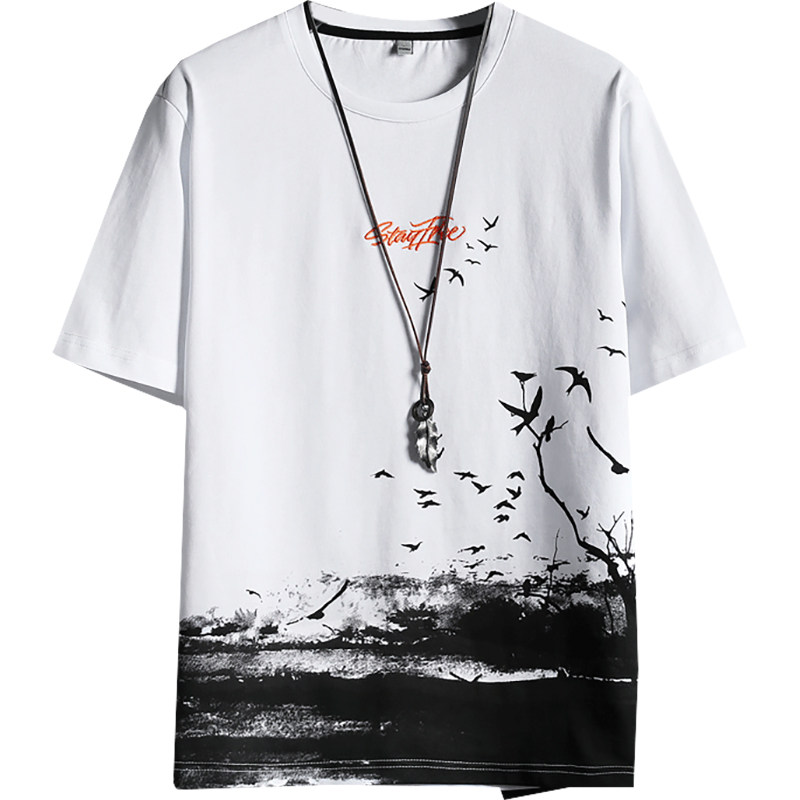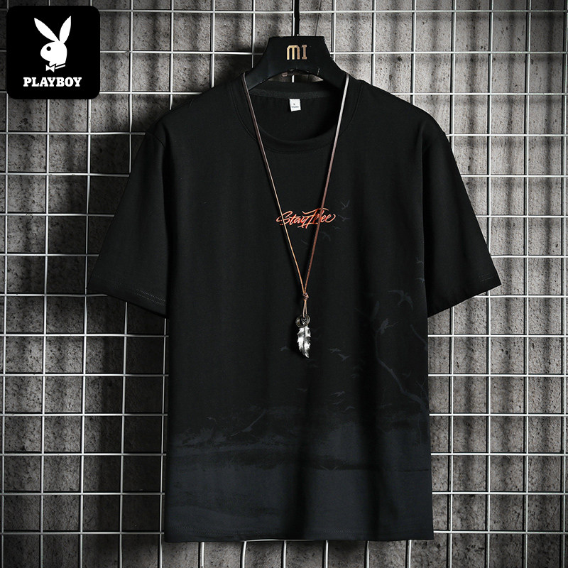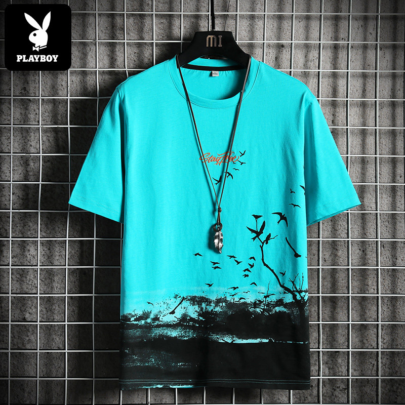 Flowers Playboy Summer short sleeves T-shirt Male thin section Ice Sensation Pure Cotton Ins Tide Cards Casual Half Sleeve Clothes T-shirt