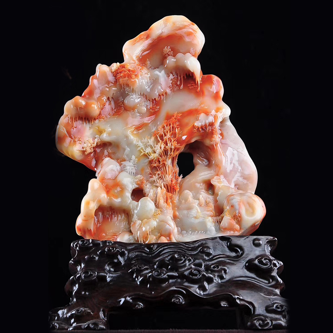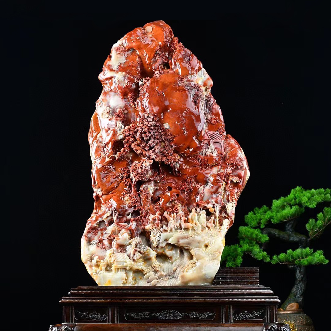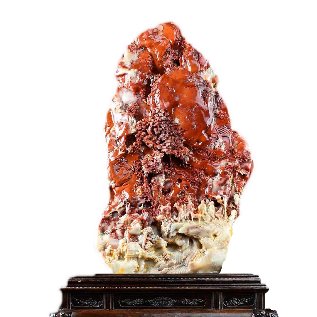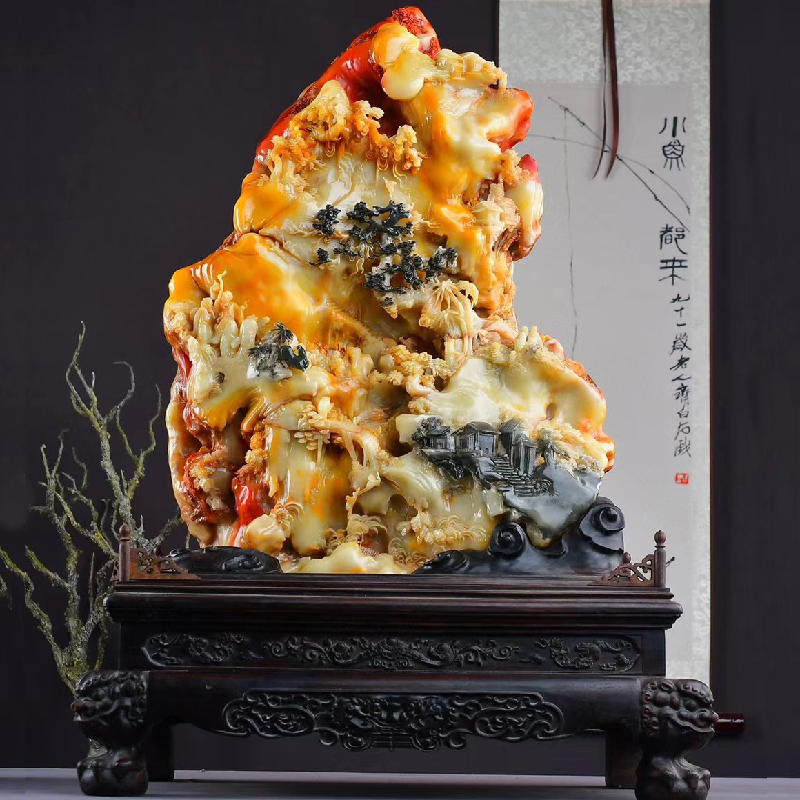 Shoushan Changhua Liaoguo Hibiscus Stone Jade Landscape Landscape Large Ornament Stone Strange Stone Rough Carved Natural Living Room
