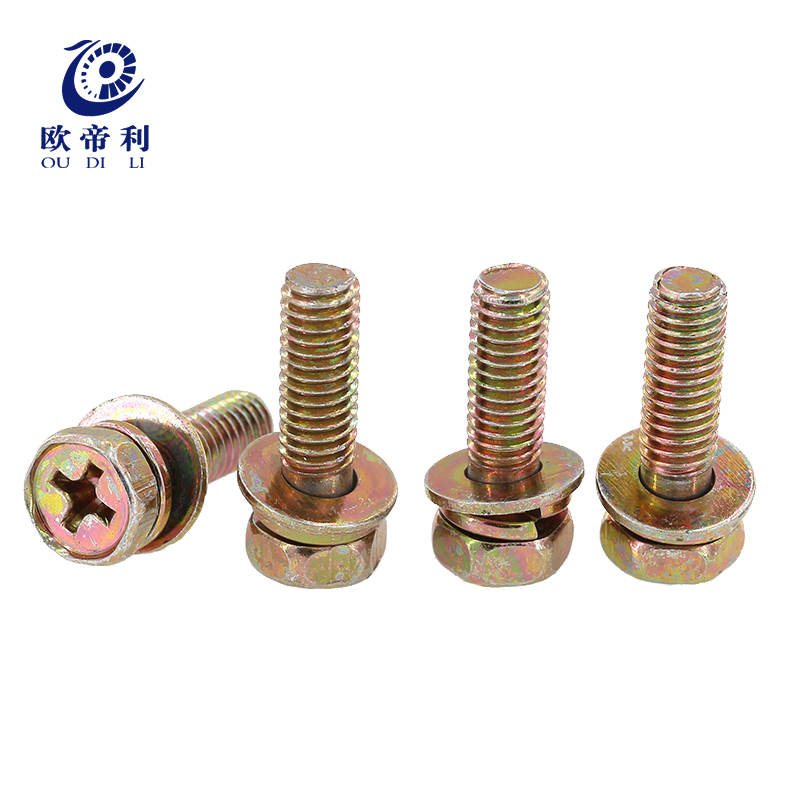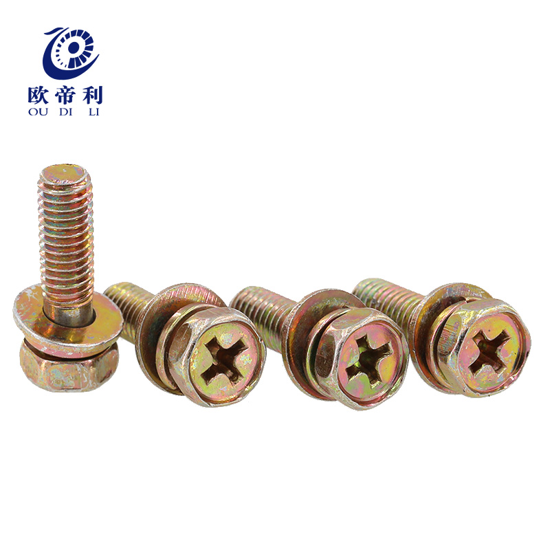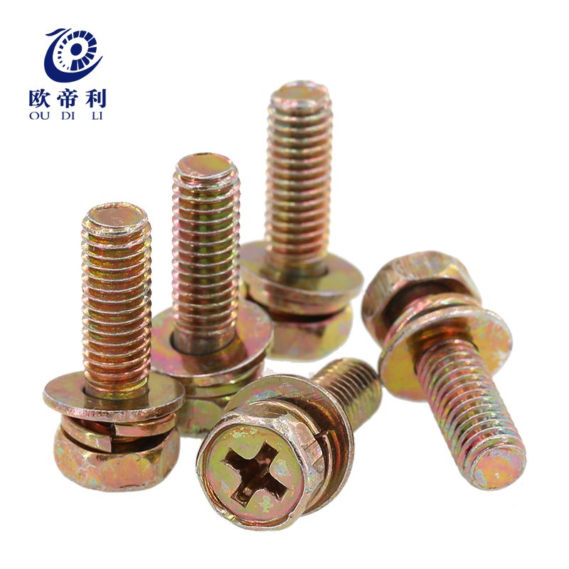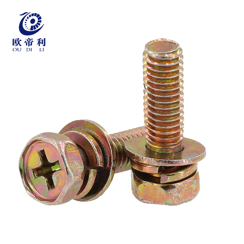 Color cross hexagon three combination screw concave head hexagon combination with flat pad elastic pad screw M4M5M6M8