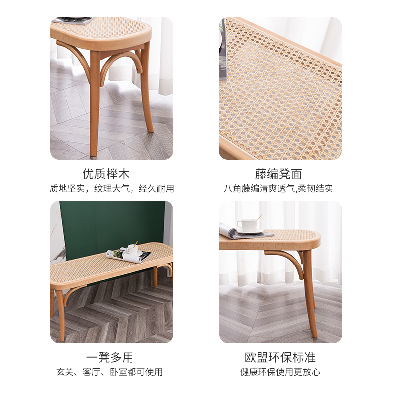 Household solid wood bench door changing shoe stool rattan long stool medieval porch bedroom bed end stool simple and modern