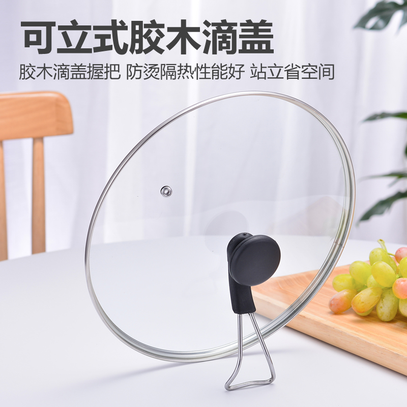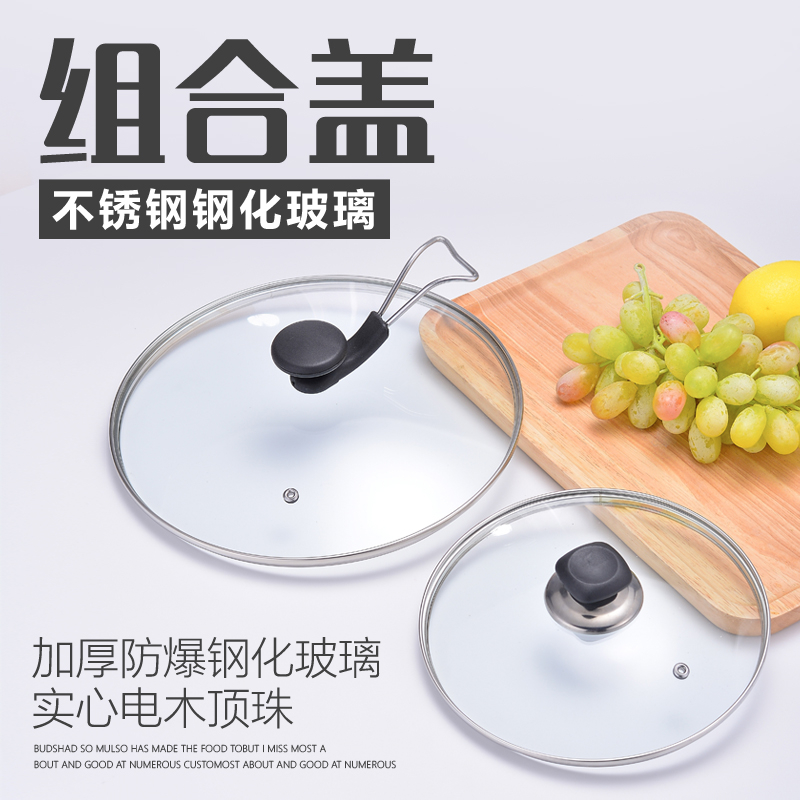 Pot lid household cap transparent tempered glass heat-resistant steamer frying pot lid 32cm stainless steel round soup pot lid
