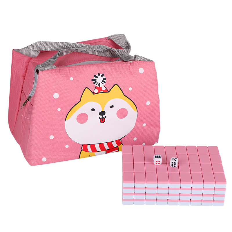 30mm pink mahjong + handbag + tablecloth