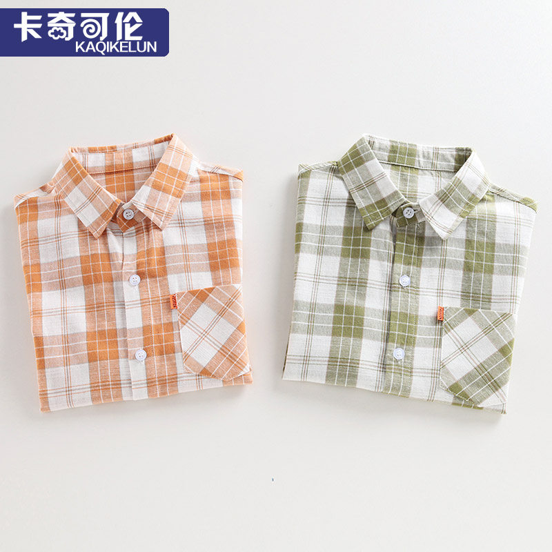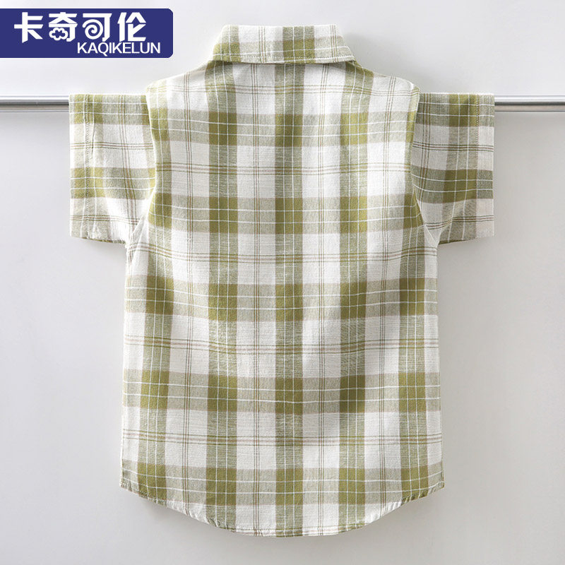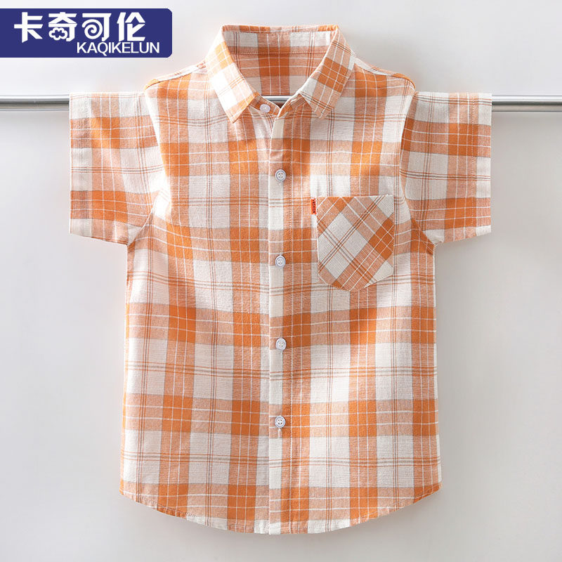 Boy shirt short sleeve pure cotton summer fit 2022 new child handsome shirt CUHK boy plaid shirt boy summer