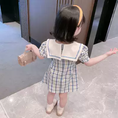 2021 new girls dress baby lady style Plaid lapel skirt little girl Summer Academy dress
