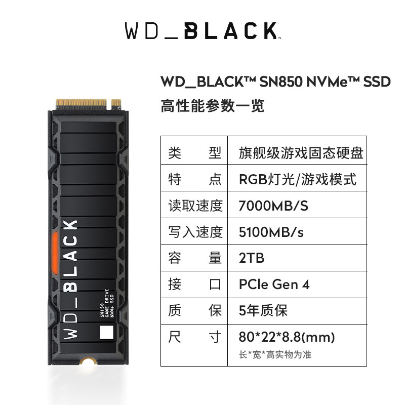 WDWesternSN850 RGB vest version 2t solid state drive PCIe 4 0 desktop host ps5 expansion disk SSD