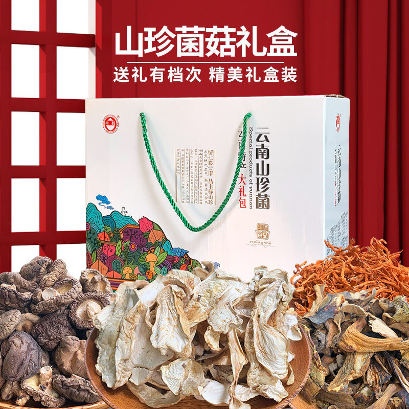 Yunnan Wild Mountain Treasures Mushrooms Great Gift Bags Wild Fungus pine and dried goods Gift Boxes Special Products Wholesale Group Purchase Gifts