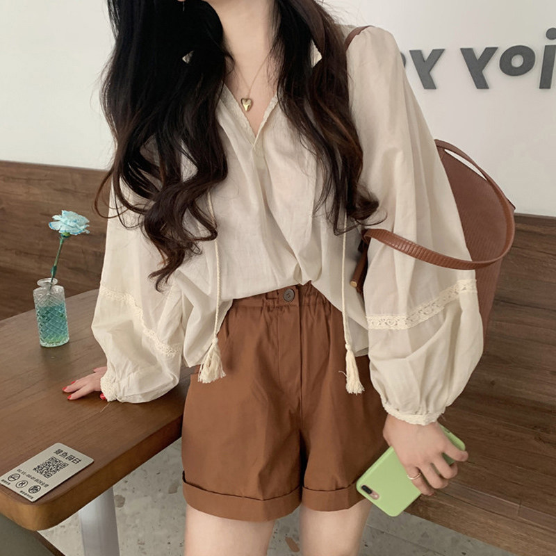 2023 New Salt Shirt Net Red Fried Street Harbor Wind Renaissance Chic Shorts Small Fragment Small Fragment Small Summer Set Women