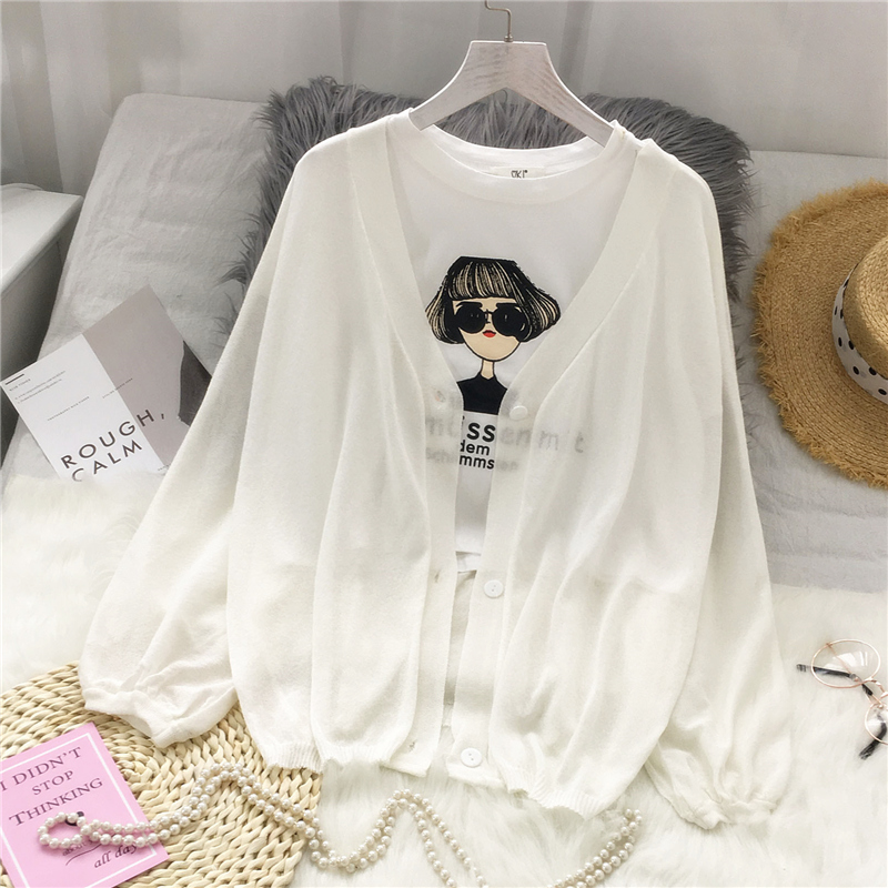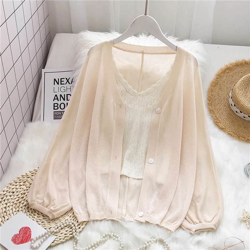South Korea summer short section outside the very fairy thin ice silk coat sunscreen clothes Air conditioning shirt knitted cardigan loose women's trend