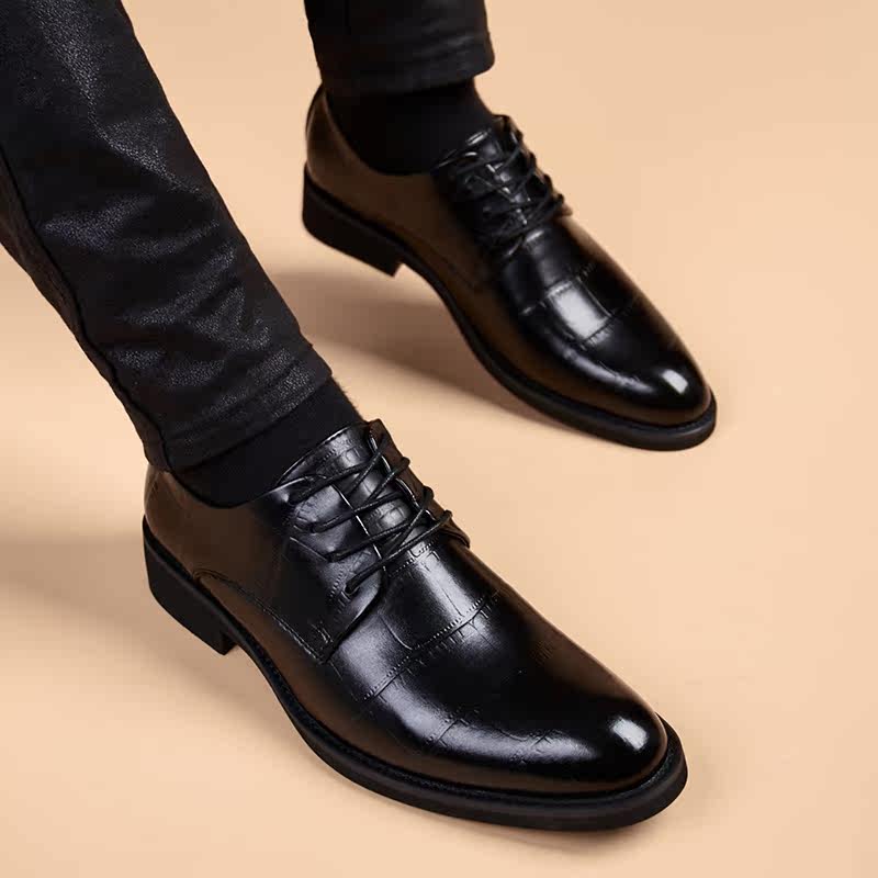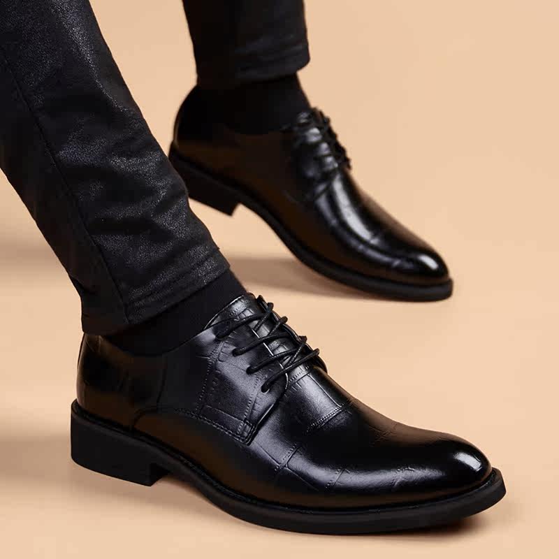 Leather shoes Men's Inron Youth Genuine Leather Wedding Shoes Man HEIGHTENING SOFT BOTTOM BLACK OFFICE POINTED BUSINESS POSITIVE DRESS MEN'S SHOES