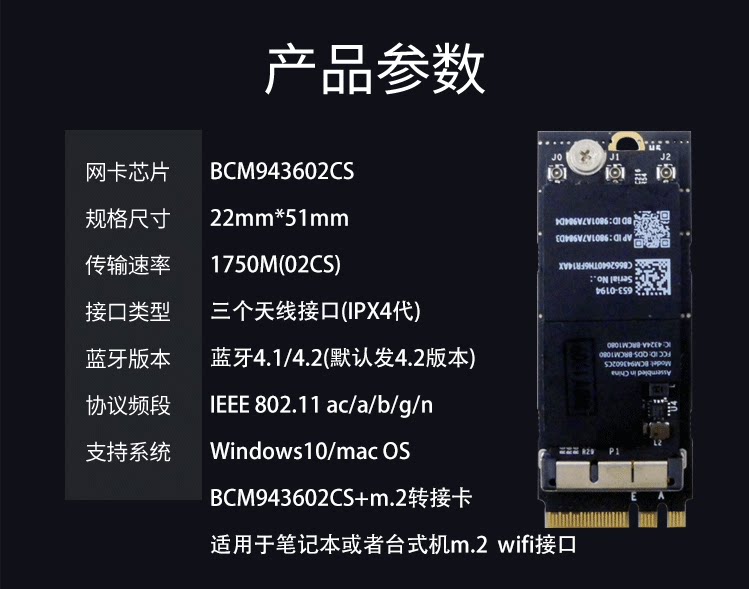 BCM943602CS Single-module BCM943602CS forward riser 02CS forward riser built-in antenna 02CS forward Huashuo 86U days
