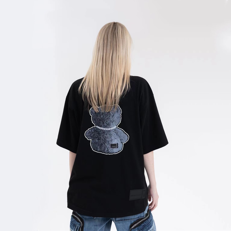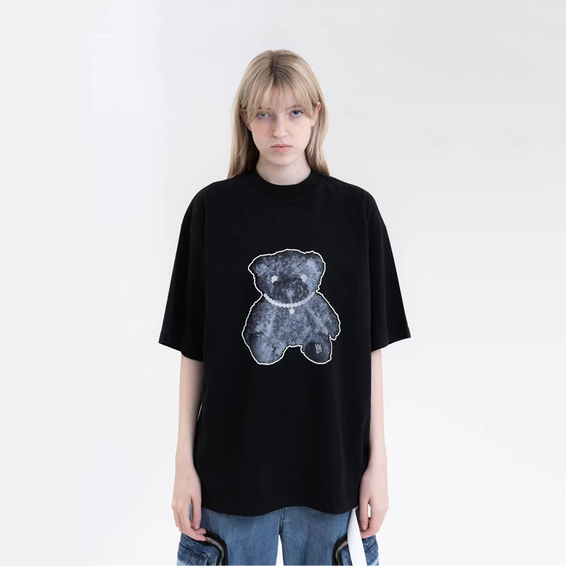 we11done welldone 21ss 3M reflective pearl necklace bear print short sleeve T-shirt