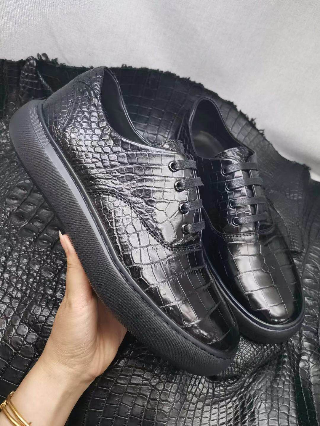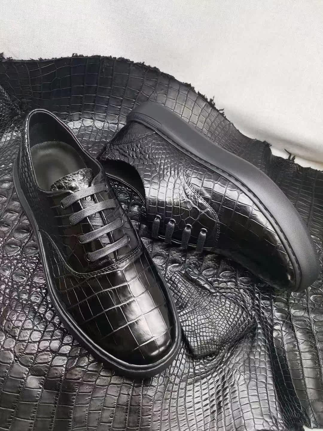 Crocodile Belly Leather Men Leather Shoes Fashion Casual Round Head New Sneakers Hand Sewn Super Light Rubber Foaming Tide