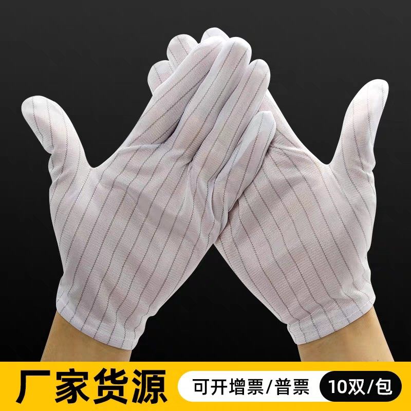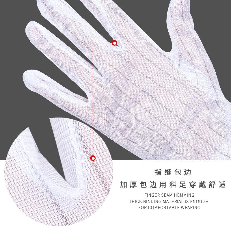 Anti-static double-sided striped gloves dust-free white work gloves thin breathable work universal gloves