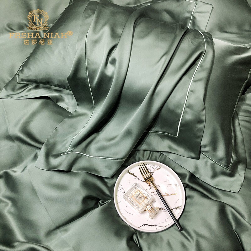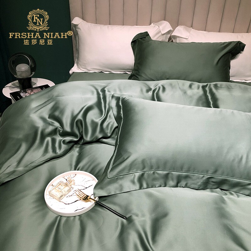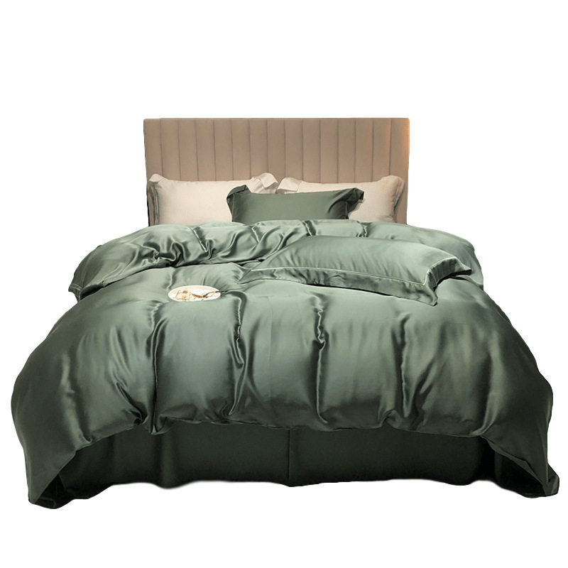 New Summer 100 Double-sided Sky Silk Four Sets Minimalist Ice Silk Cool sheet Genuine Silk Quilt Bedding bedding