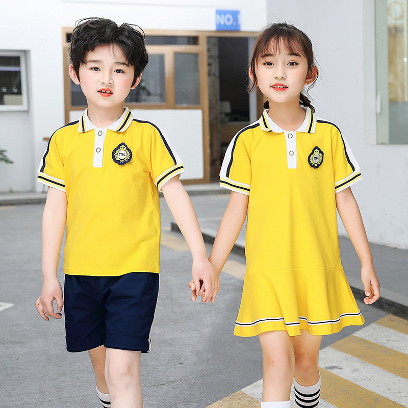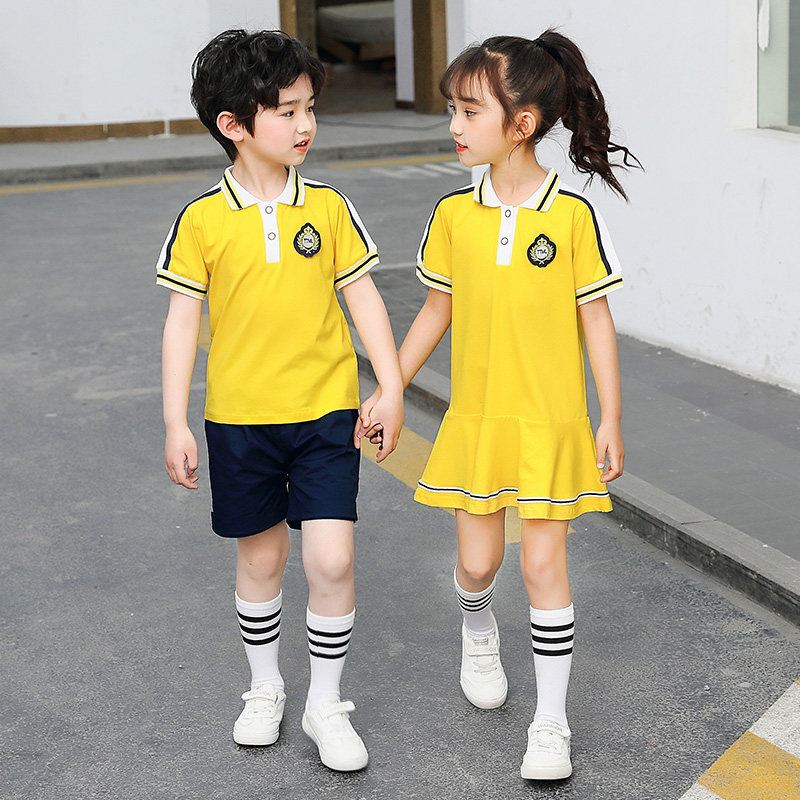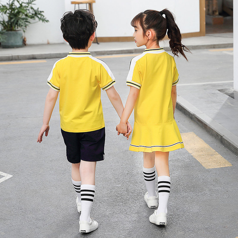 Primary school uniforms summer new yellow sportswear teachers' uniforms 61 children's class uniforms customized kindergarten uniforms
