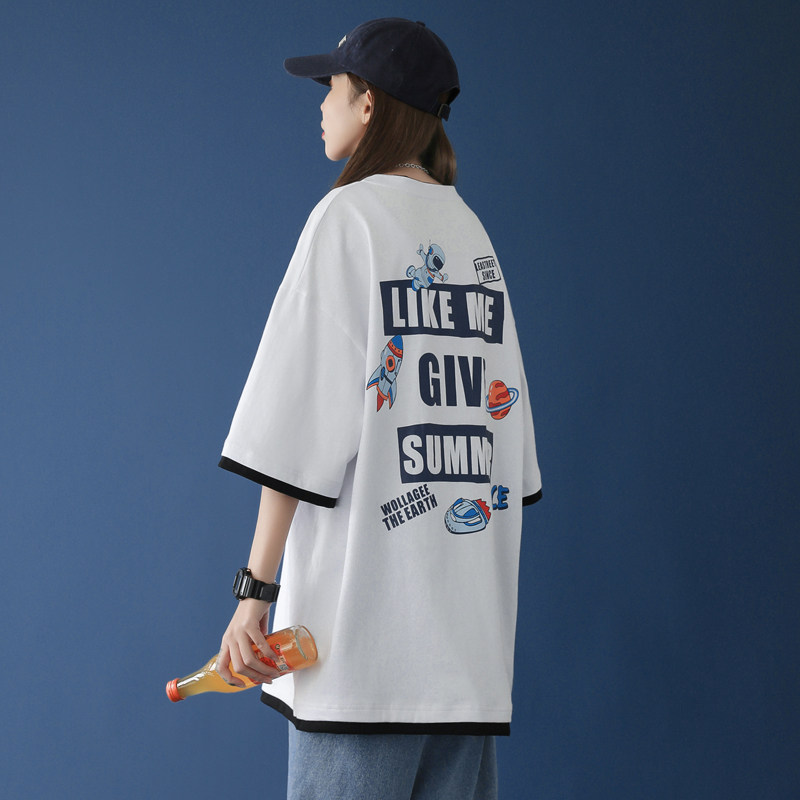 Short sleeve T-shirt men's pure cotton collar coat summer new trend printing pure color printing in loose cover shirt