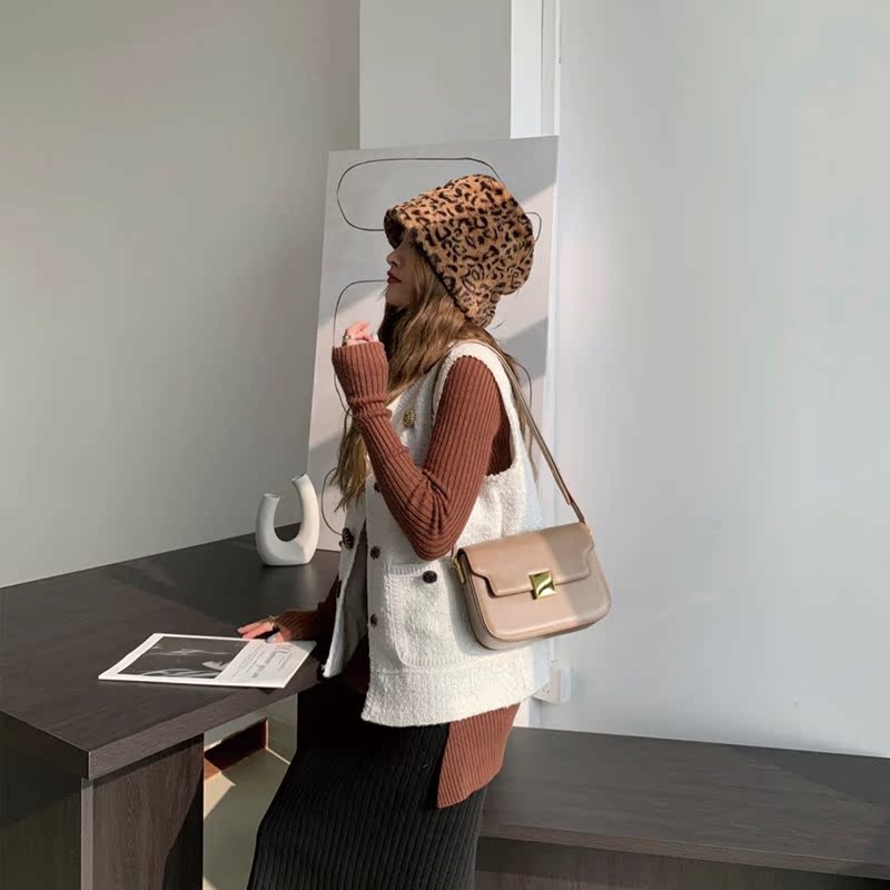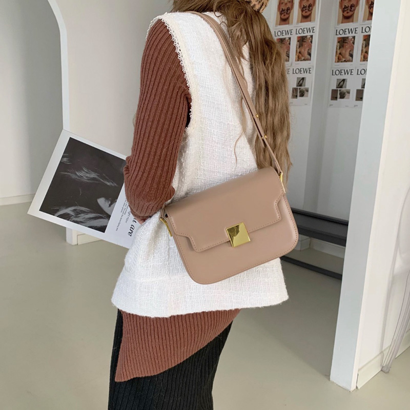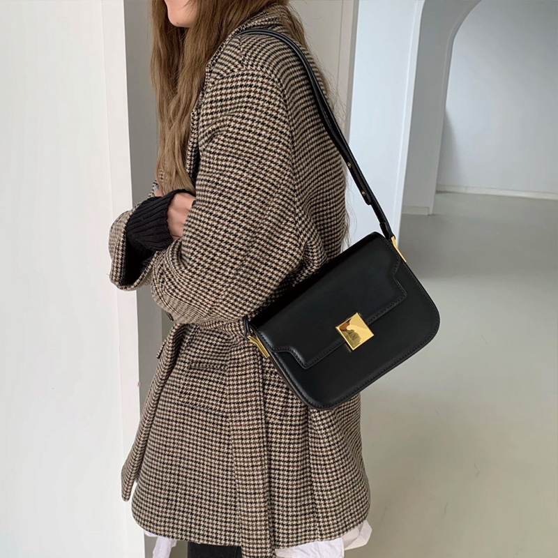 Fashion all-match cowhide shoulder messenger bag women's high-end retro small square bag women's new simple foreign style tofu bag