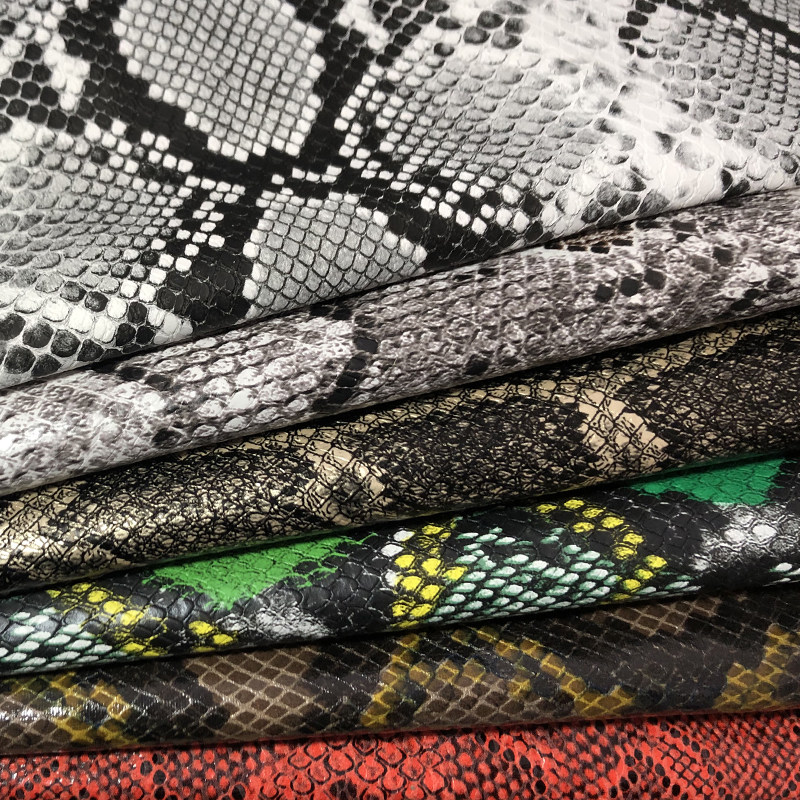 European and American snakeskin pattern PU leather fabric clothing dress printing leather fabric soft patching clothes design fabric
