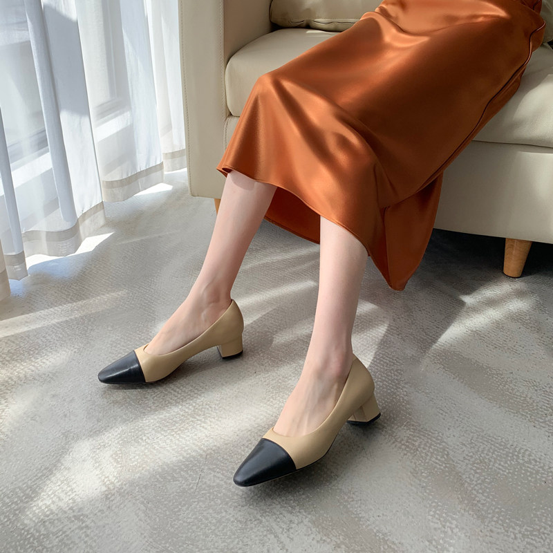 Ma's Jiamin full-real leather-phase collage of small fragrant wind single shoes with leather shoes commute 100 hitch