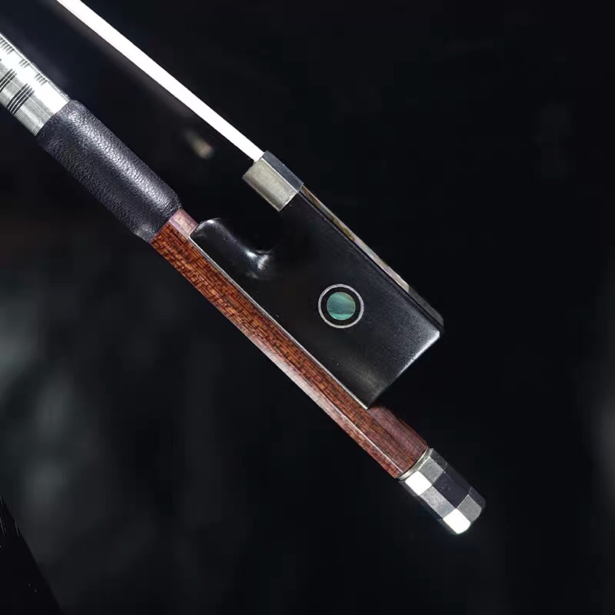 Su wood grain violin bow wrapped su wood grain leather carbon fiber violin bow