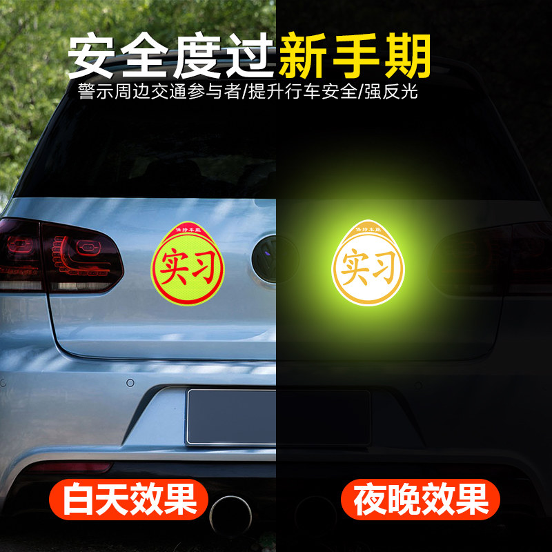 Car internship period logo car stickers novice on the road car stickers female driver car magnetic diamond reflective magnetic stickers