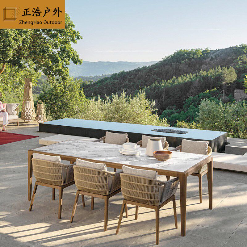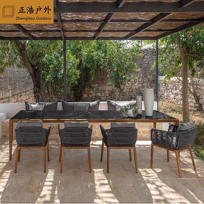 Outdoor table and chairs Leisure outdoor patio Terrace Rattan chair Garden Hotel Yangguang Room Vine-Knitted Embalming Wood Furniture Combination-Taobao