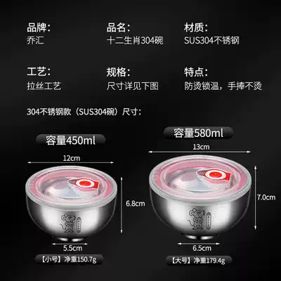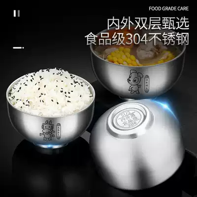 Qiahui 304 Stainless Steel Bowl Household Food Grade Double Thick Anti-hot Bowl Children Bowl Baby Rice Bowl with Cover