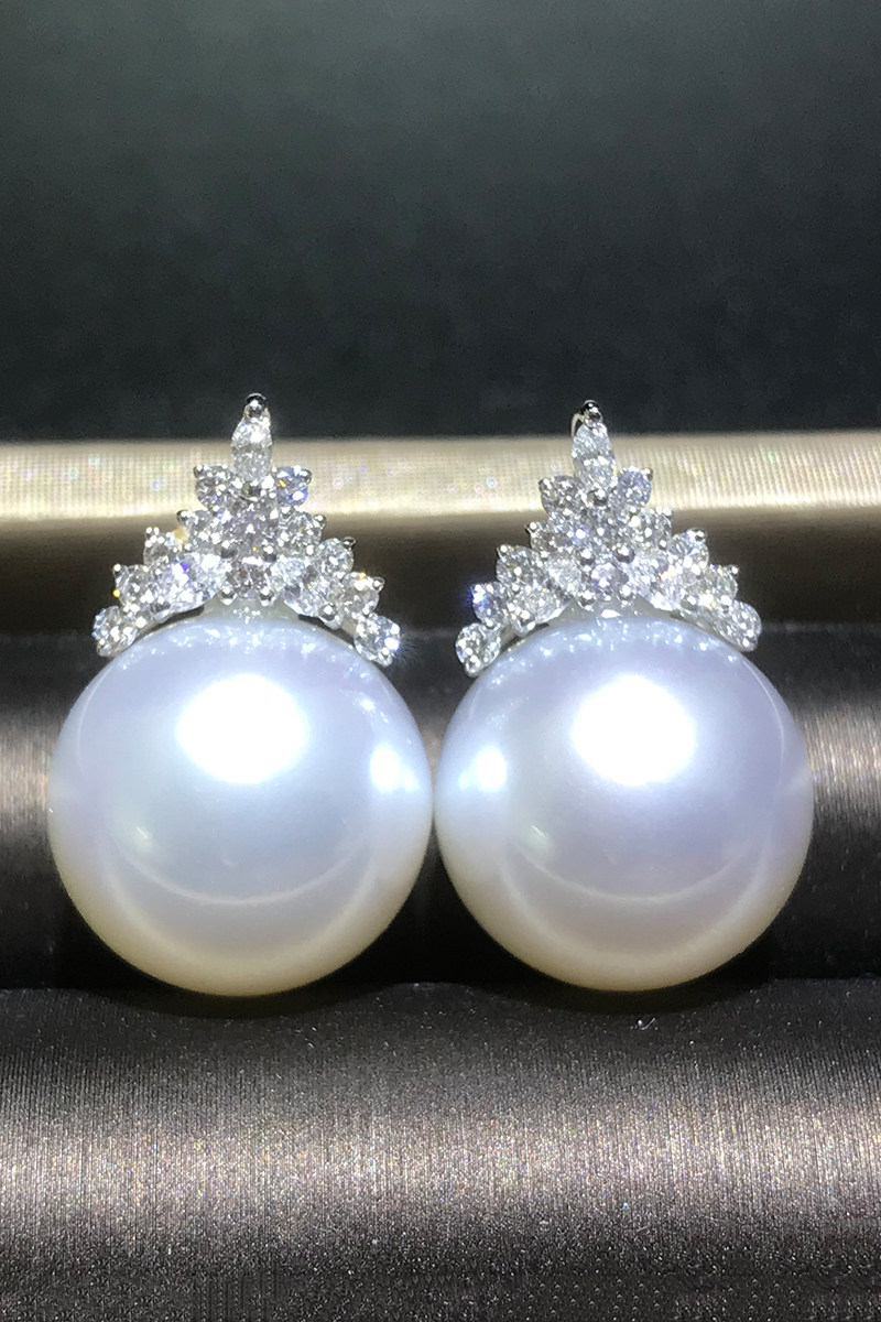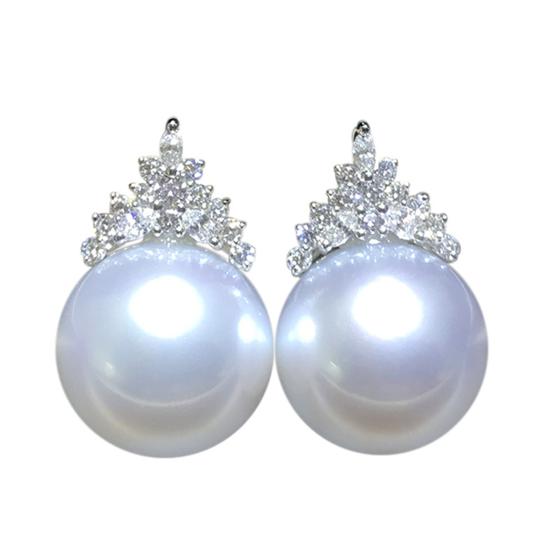 Natural Nanyang Australian White Pearl Earrings 18k Gold Diamonds Nanyang Sea Water Pearl Ear Nail Snow Queen